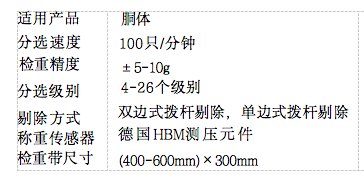越來越多的家禽屠宰場(chǎng)開始采用重量分選,通過對(duì)每個(gè)胴體的重量進(jìn)行稱量,并自動(dòng)將其分類到規(guī)定的重量等級(jí),有效地替代了人工分選,提 高了產(chǎn)品的標(biāo)準(zhǔn)化和分選速度。
